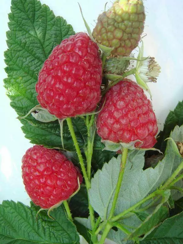 Наземна частина малини складається з однорічних плодючих, прямих, стебел, що розвиваються з кореневища, заввишки 160-170 см. Стебла в нижній частині покриті короткими, м'якими шипами.